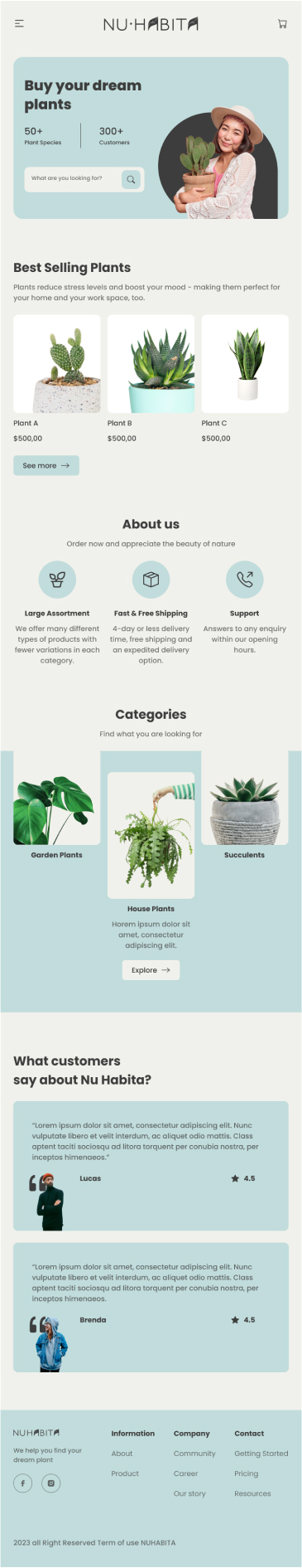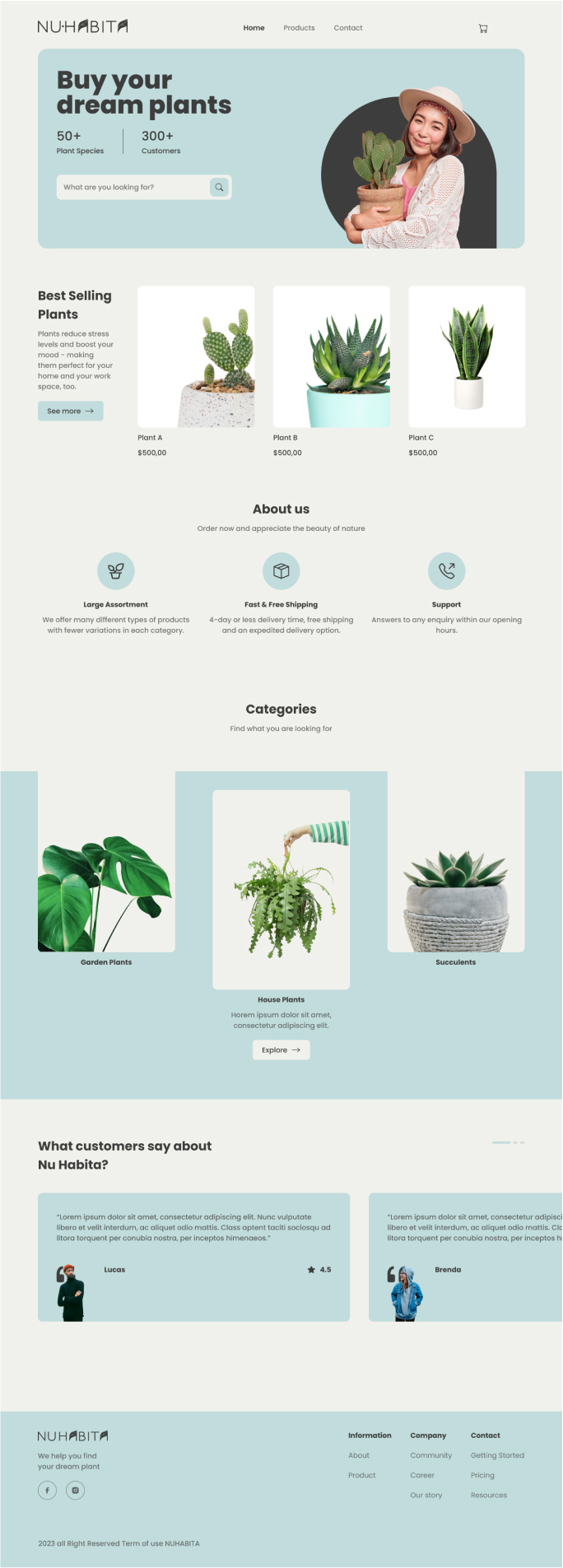 Nu Habita is a plant shop based in Buenos Aires that wanted to expand their business with an online store. The goal of this project was to design a simple and intuitive e-commerce platform that reflected the brand’s values: nature, warmth, and sustainability.