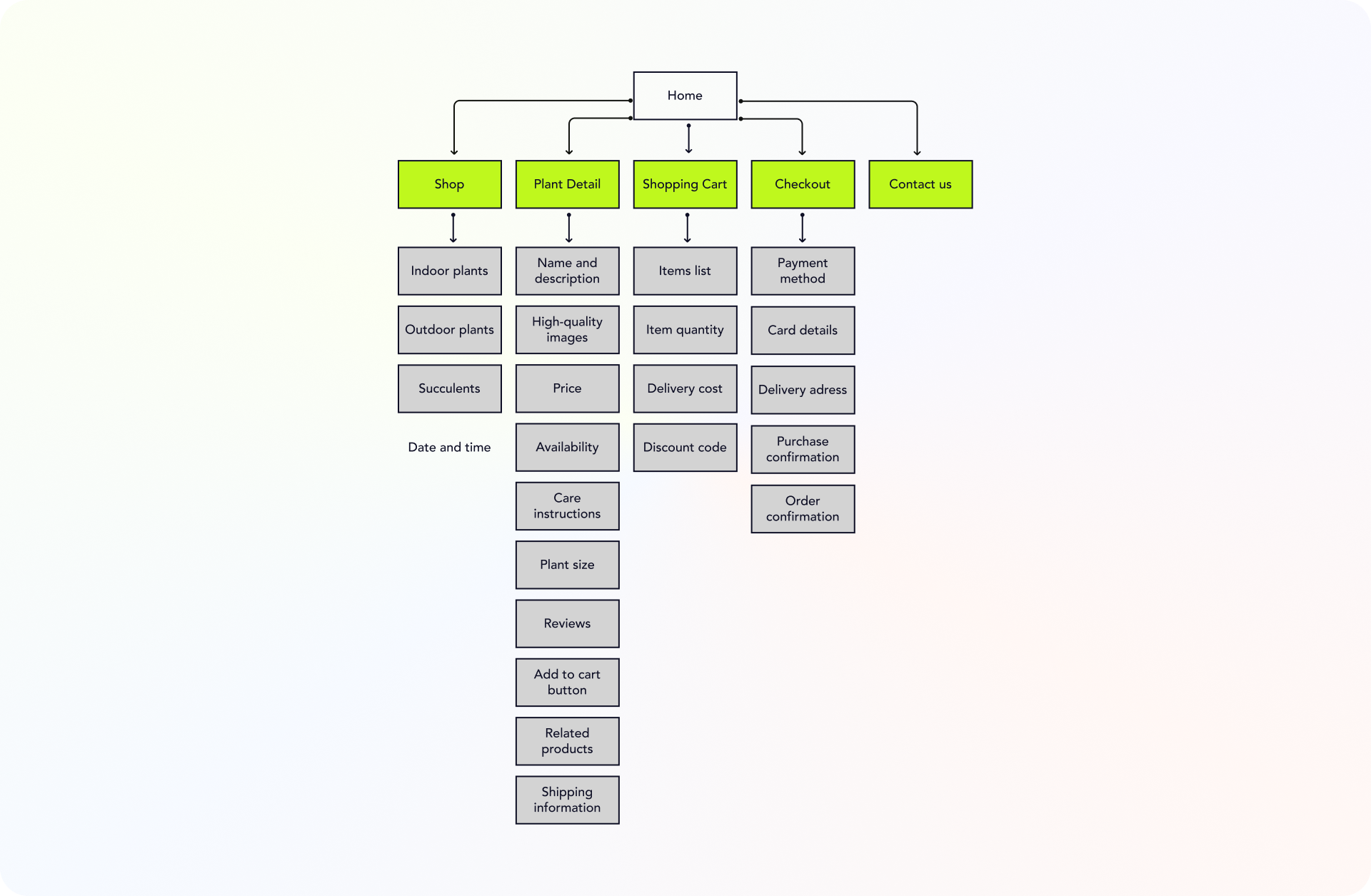 To understand users’ needs, I conducted interviews with plant lovers, urban dwellers, and potential buyers. The research revealed that while people enjoy purchasing plants, many felt insecure about how to care for them. A secondary pain point was the difficulty in navigating plant categories online.